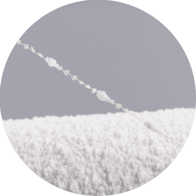 Olann: Cuireann snáithíní olann teas agus marthanacht le snáth chrysanthemum , rud a fhágann go bhfuil sé oiriúnach do bhaill éadaigh gheimhridh cosúil le hataí agus seálta trom. Feabhsaíonn crimp nádúrtha snáithíní olann an éifeacht "petal" i struchtúr na snáth, rud a thugann cuma níos iomláine agus níos toirtiúla dó. Ina theannta sin, cuireann olann leaisteachas den scoth ar fáil, rud a chabhraíonn le snáth chrysanthemum a chruth a choinneáil le himeacht ama, fiú le húsáid arís agus arís eile.