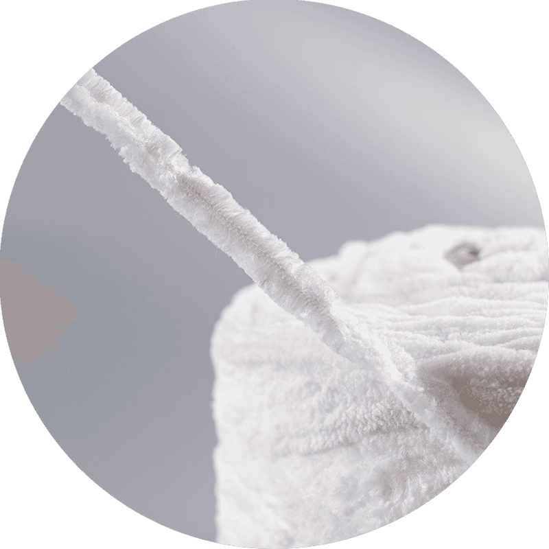 Tá airíonna na snáithíní a úsáidtear i snáth veilbhit dhá thaobh ag croílár a chumais coinneála teasa. Tá an taobh veilbhit plush déanta chun póca aeir a chruthú idir na snáithíní, ag gabháil le teas agus a chosc ó éalú. Déantar an éifeacht inslithe seo a fheabhsú tuilleadh trí dhlús na snáth, rud a laghdaíonn caillteanas teasa agus a choimeádann an duine féin cluthar. I gcodarsnacht leis sin, comhlánaíonn an taobh fabraice réidh an veilbhit trí theagmháil bog a thairiscint gan cur isteach ar théamh, ag cinntiú go soláthraíonn míreanna a dhéantar as an snáth seo compord i gcoinne an chraiceann.