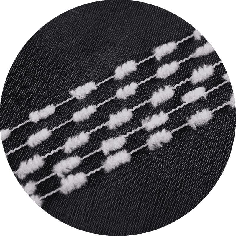 Ceann de na buntáistí suntasacha a bhaineann le snáth scuab fiacla ná a chumasc snáithíní, a sholáthraíonn mothú bog, compordach agus a fheabhsaíonn marthanacht. Déanann an tréith seo oiriúnach le haghaidh éadaí agus teicstílí tí araon, áit a bhfuil compord agus fad saoil riachtanach. Ina theannta sin, is minic a dearadh snáth scuab fiacla le bheith éasca oibriú leis, rud a ligeann do cheardaithe nua-aimseartha agus taithí araon tionscadail álainn a chruthú gan mórán frustrachais.